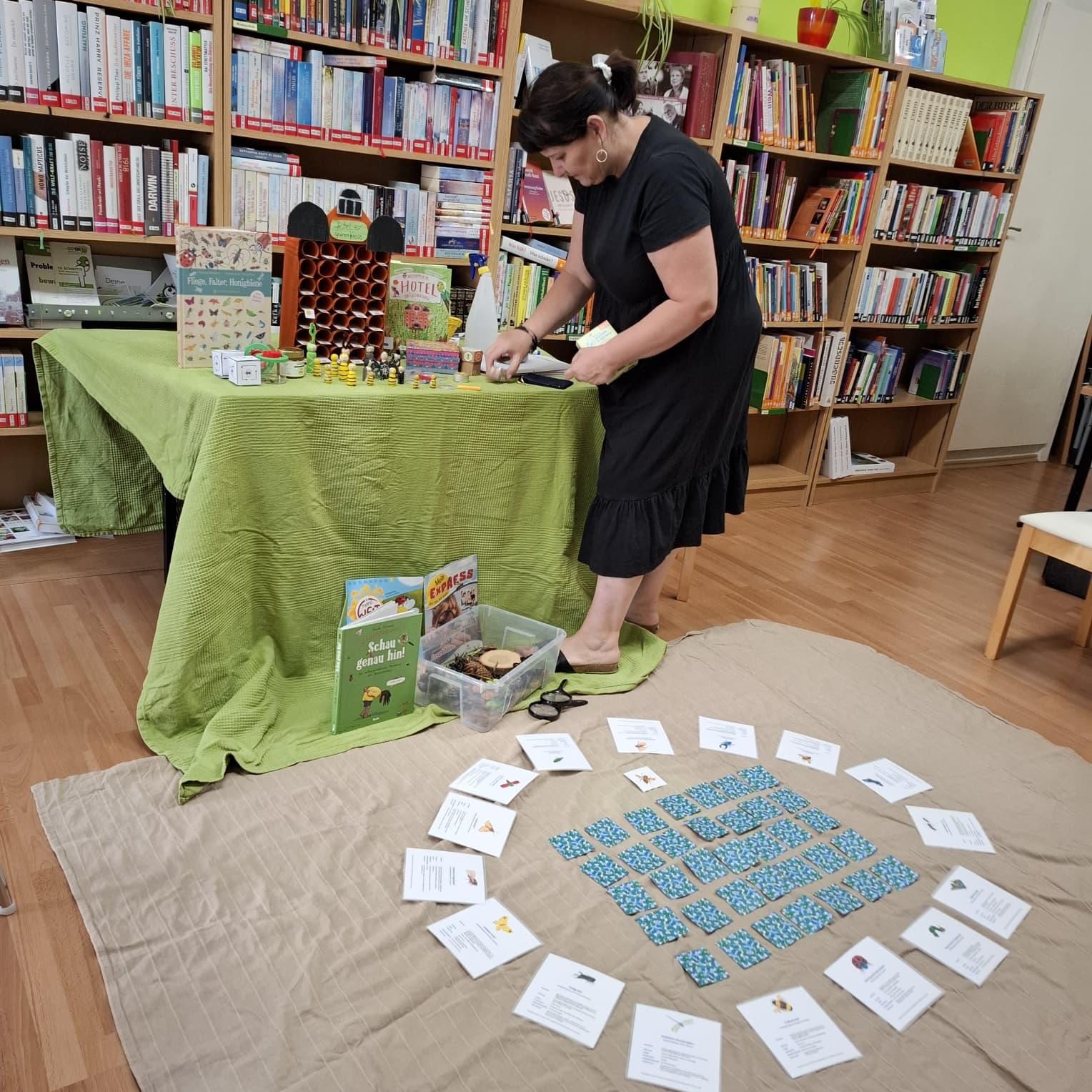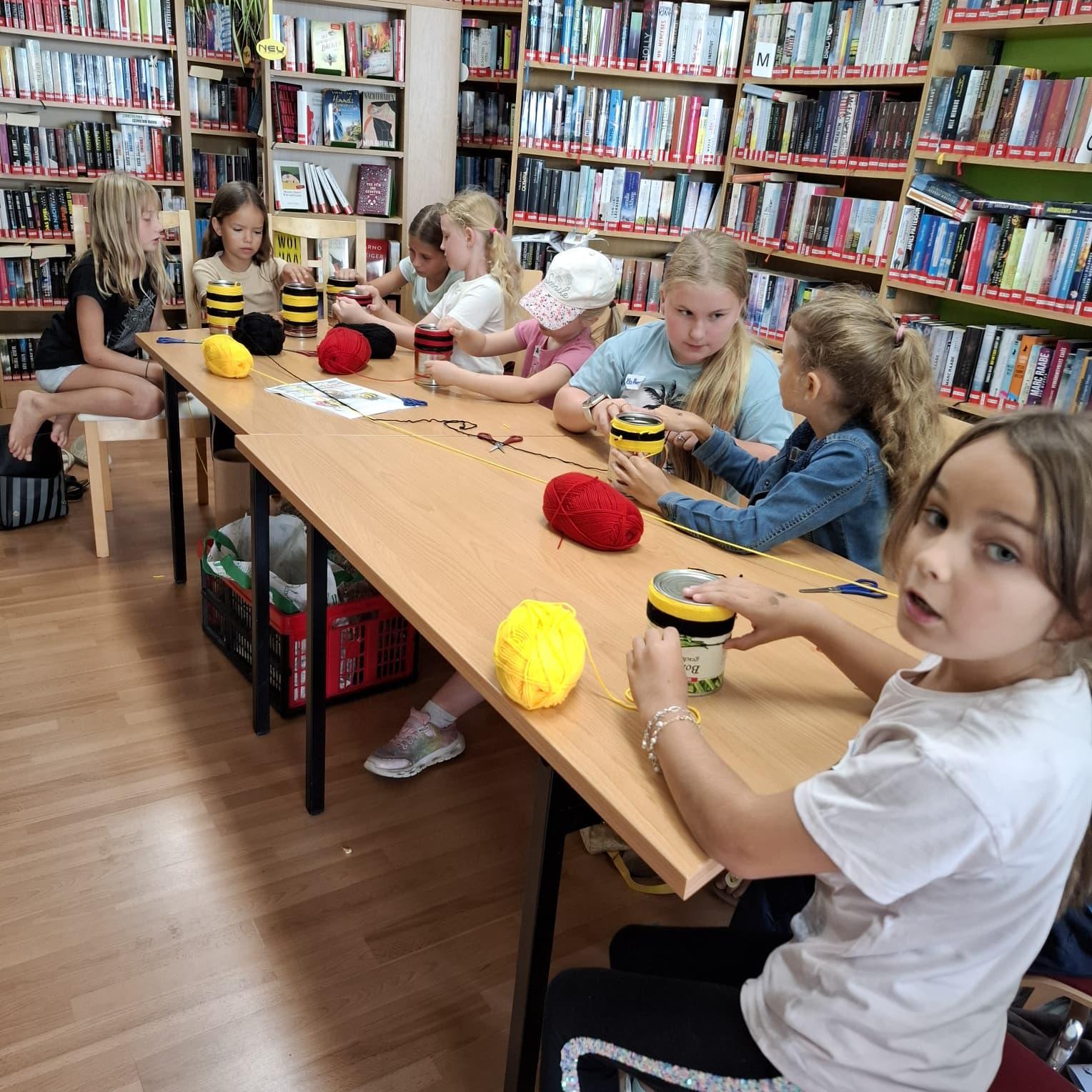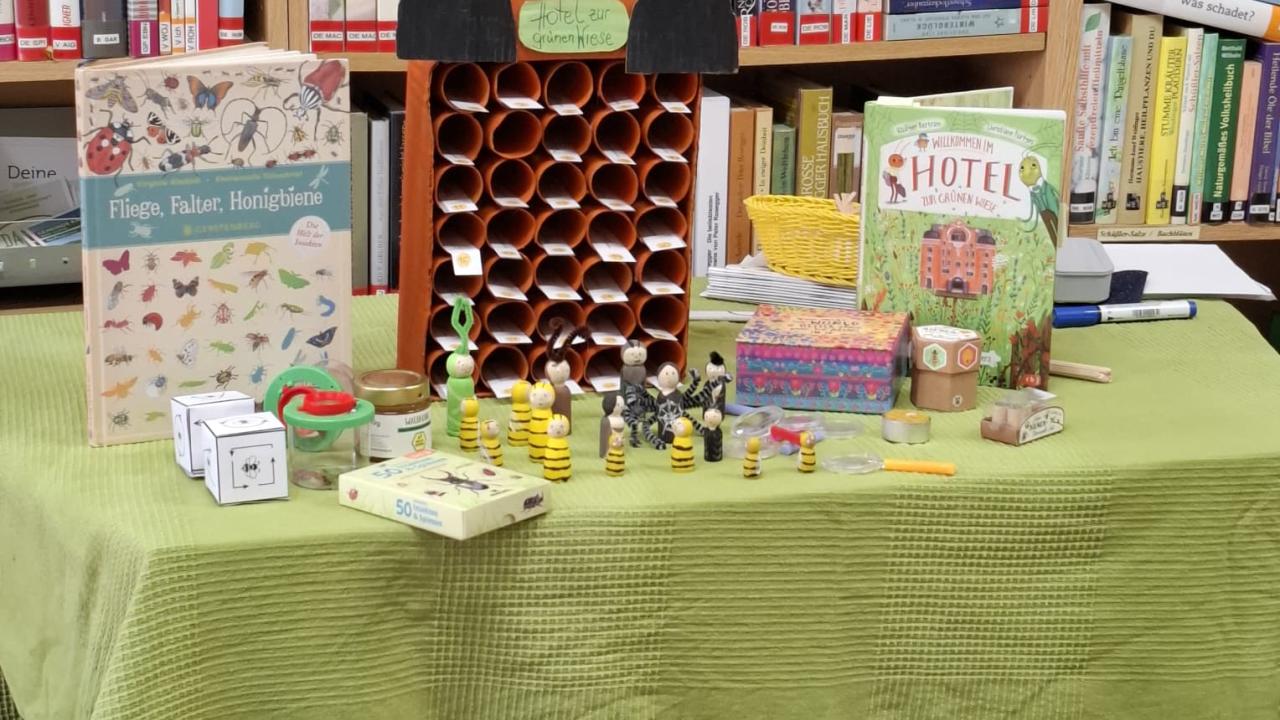 Kinderferienprogramm 2025 Willkommen im Hotel zur grünen Wiese Kinderferienprogramm in der Bücherei 2025 Samenkugeln für Blumenwiese to go Samenbeutel selbst gemacht Gute Vorbereitung ist die halbe Miete Was krabbelt auf Wiese und im Garten? Wissen über das Thema aneignen... Auch Insekten benötigen ein Zuhause Was passiert im Hotel zur grünen Wiese Nach Vorlesen des Buches "Das Hotel zur grünen Wiese" wurde das Wissen über unsere Insekten mittels Quizfragen, Infokarten und Sachbücher erweitert. Was man selbst liest, merkt man sich viel besser Die kleinen Forscher bekamen Bienenstempel Und nun werden Insektenhotels für den eigenen Garten gebaut. Alles Wissenswerte über unsere heimischen Käfer.