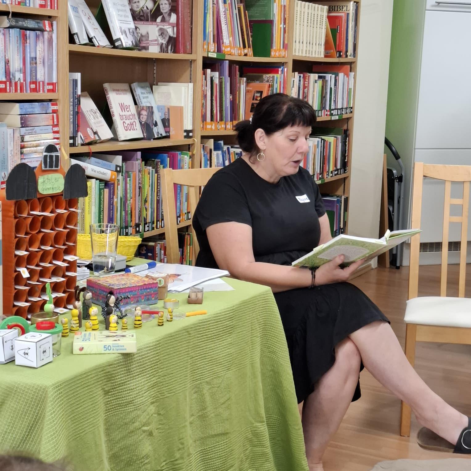 Kinderferienprogramm 2025 Willkommen im Hotel zur grünen Wiese Kinderferienprogramm in der Bücherei 2025 Samenkugeln für Blumenwiese to go Samenbeutel selbst gemacht Gute Vorbereitung ist die halbe Miete Was krabbelt auf Wiese und im Garten? Wissen über das Thema aneignen... Auch Insekten benötigen ein Zuhause Was passiert im Hotel zur grünen Wiese Nach Vorlesen des Buches "Das Hotel zur grünen Wiese" wurde das Wissen über unsere Insekten mittels Quizfragen, Infokarten und Sachbücher erweitert. Was man selbst liest, merkt man sich viel besser Die kleinen Forscher bekamen Bienenstempel Und nun werden Insektenhotels für den eigenen Garten gebaut. Alles Wissenswerte über unsere heimischen Käfer.